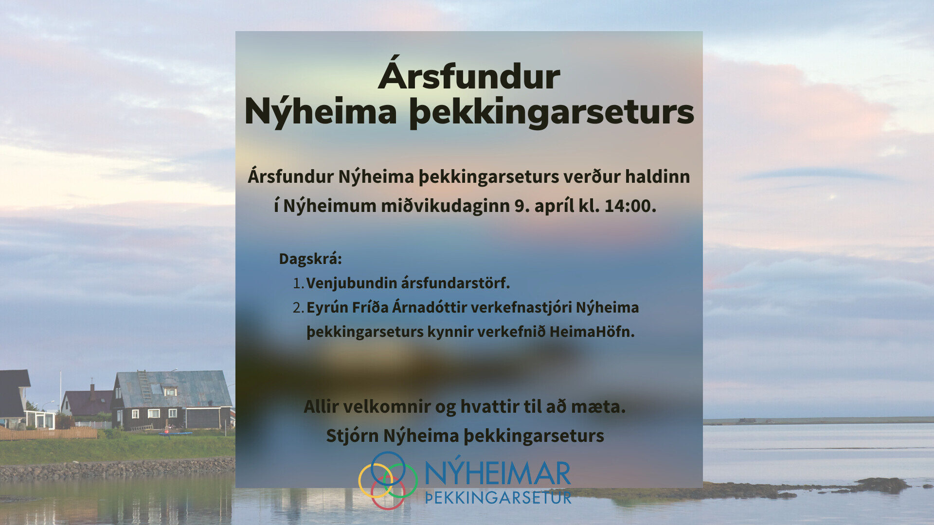 Allir velkomnir og hvattir til að mæta. Stjórn Nýheima þekkingarseturs