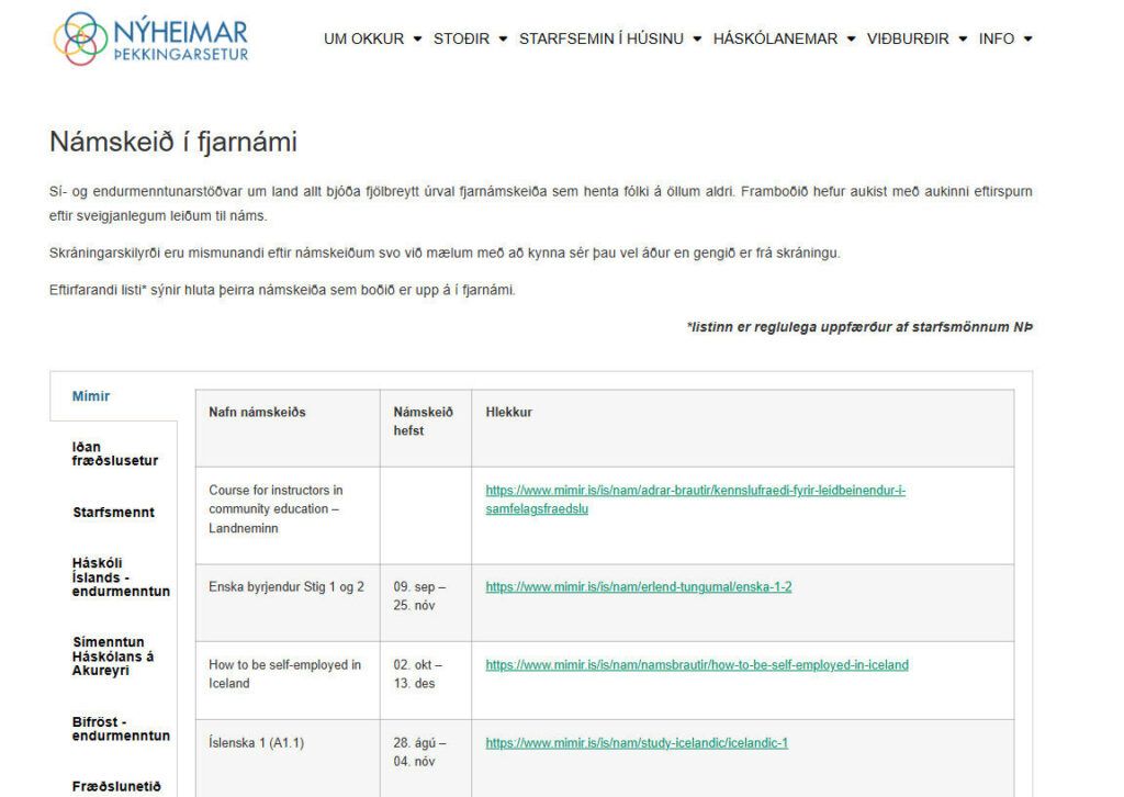 Uppfærður listi af námskeiðum í fjarnámi fyrir haustið