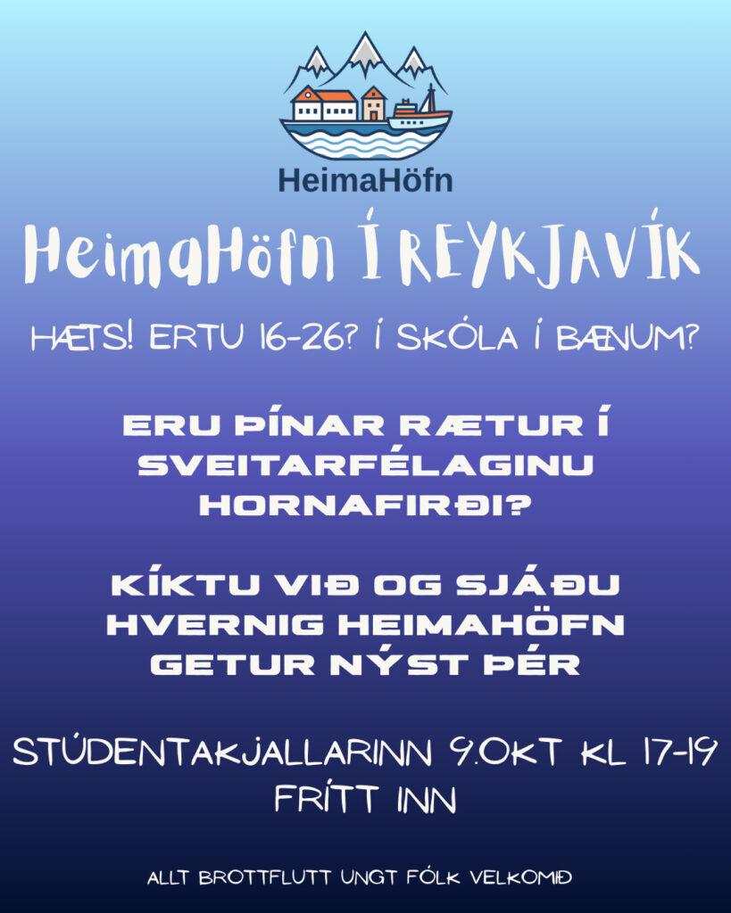 Einn af lykilþáttum HeimaHafnar er að vera tenging ungs fólks við samfélagið heima, þegar að þau hafa farið annað, hvort sem er í styttri eða lengri tíma. Til þess að kynna verkefnið fyrir þeim sem farin voru, áður en verkefnið fór af stað, héldum við því viðburð í Reykjavík í haust. Við buðum þeim að […]