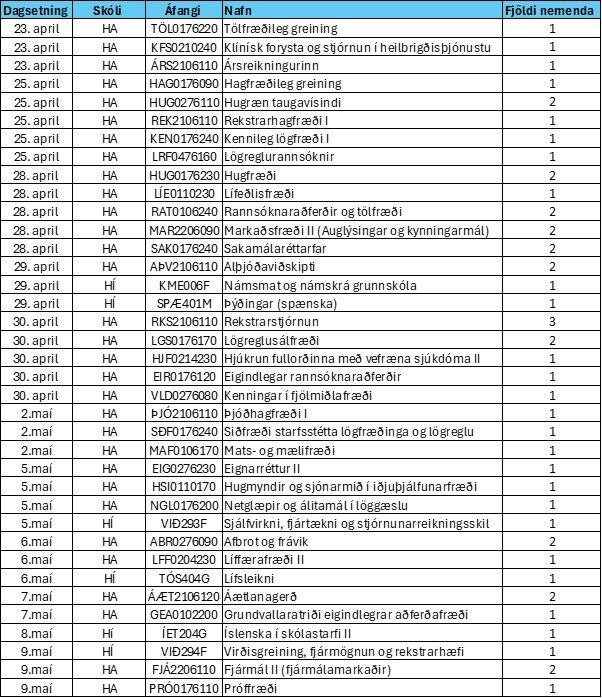Það styttist í að vorprófin hefjist í Nýheimum þekkingarsetri og mun þau standa yfir í um þrjár vikur. Í ár eru skráð 49 próf, nemendurnir koma flestir frá Háskólanum á Akureyri, en einnig frá Háskóla Íslands.